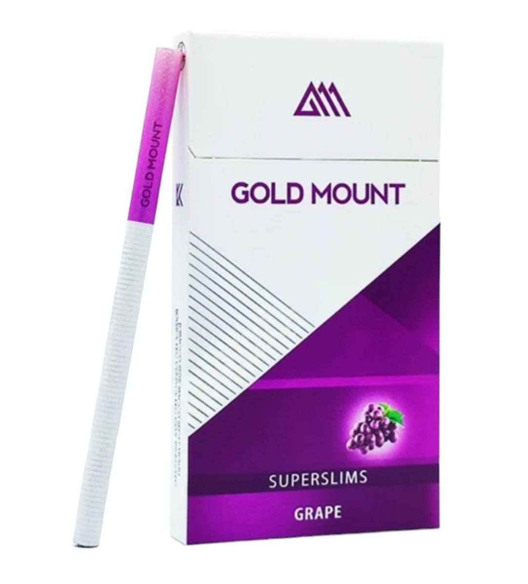บุหรี่นอก โกลเม้า องุ่น บุหรี่ GOLD MOUNT GRAPE SUPERSLIMS บุหรี่ผลไม้กลิ่นองุ่นที่หอมเตะจมูกตั้งแต่แกะซอง รสชาตินุ่มสไตล์บุหรี่มวนสลิมแต่ไม่เบาจนเกินไป ให้ความรู้สึกที่กลมกล่อมกำลังดี